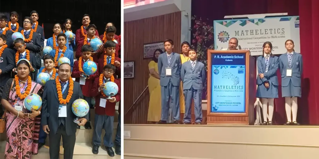 P. B. Academic School actively engaged in the first International Competition for Maths held in the City Montessori School, Lucknow held from 30th November 2023 to 3rd December 2023. The event witnessed the enthusiastic participation of 62 schools, spanning both national and international domains. Notably, P. B. Academic School contributed significantly with four participants from grades VI to IX (Arpita Sahoo, Shaurya Pal, Thumri Bag and Shivansh Shaurya)showcasing their mathematical prowess and contributing to the vibrant exchange of mathematical ideas in various events like Confabulors (Debate), Mathematicum Le Modele (Model Making) and Mathdoku (Ken Ken Puzzle). They were accompanied by two teachers, Mr Bilas Ghosh and Ms Mithu Das