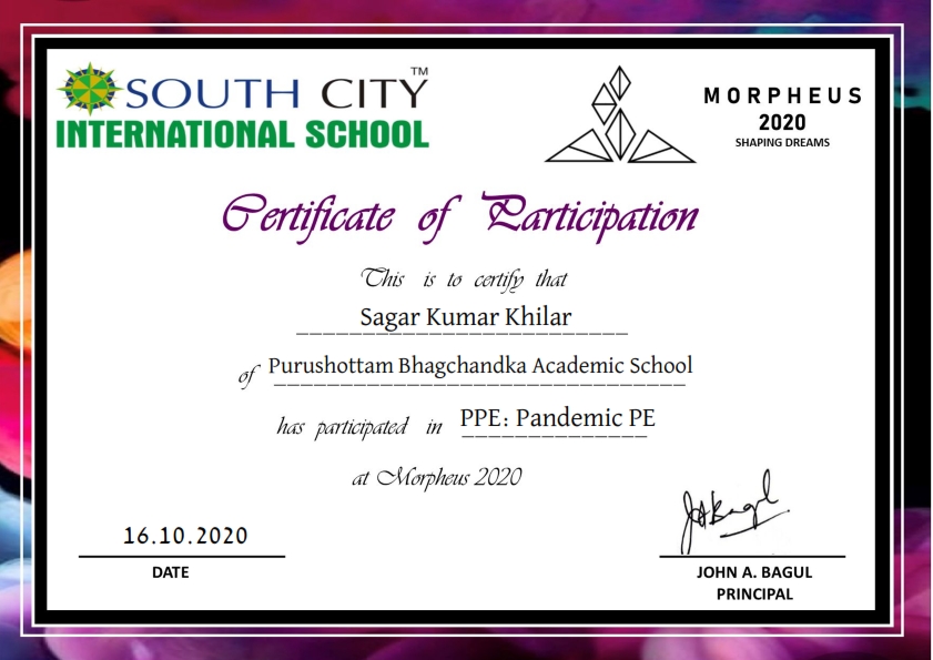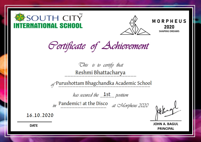 The South City International School, had organized one of the most awaited and exciting fest- Morpheus 2020 (Shaping dreams) starting from 12th to 16th October. It was a great opportunity for our students to unearth their multi-faceted talents.