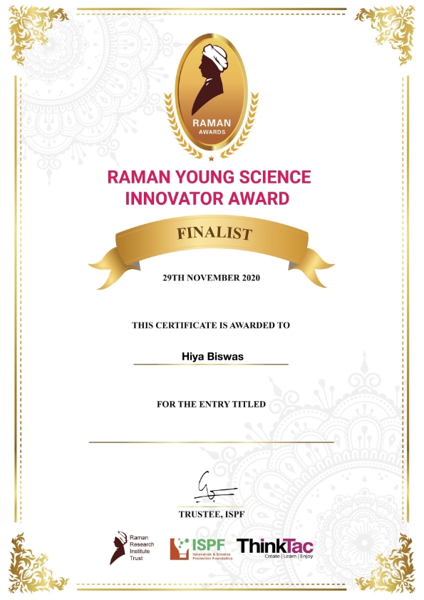 1. Young Innovator Award was received by - Hiya Biswas