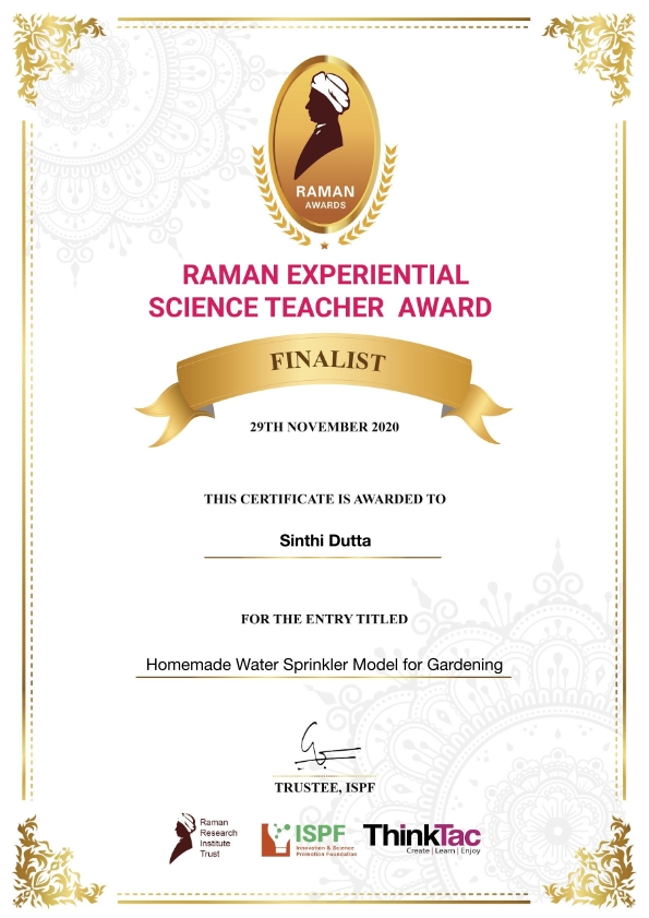 2. Science Experiment Teacher Award was received by - Sinthi Dutta